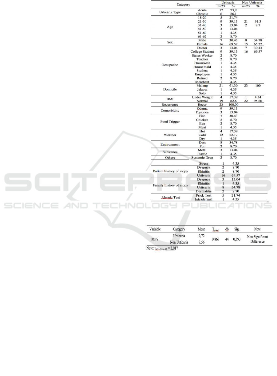 than non urticaria patient, but it has non-significant
