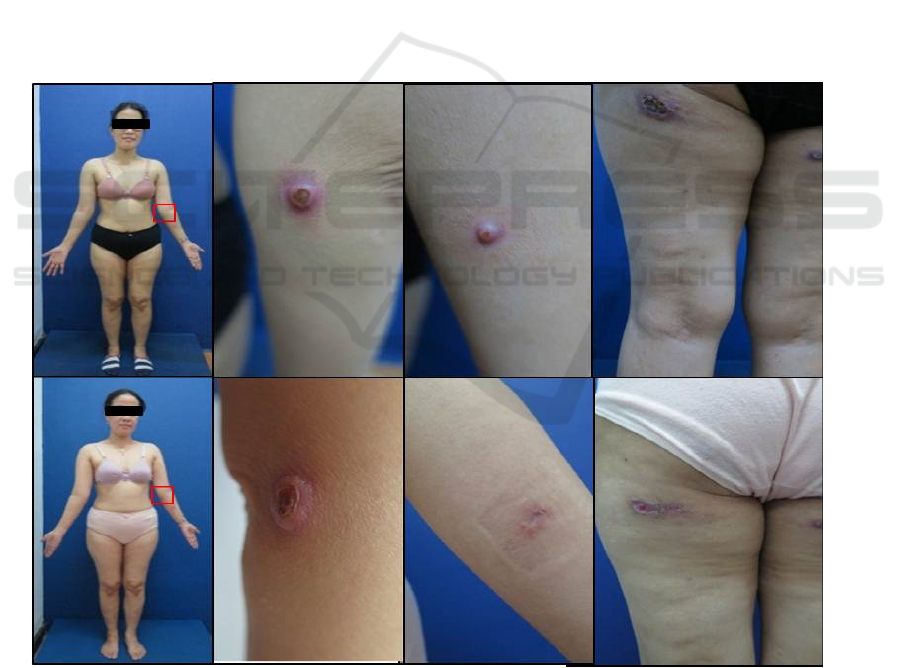the nodules on the left buttock became ulcers. There