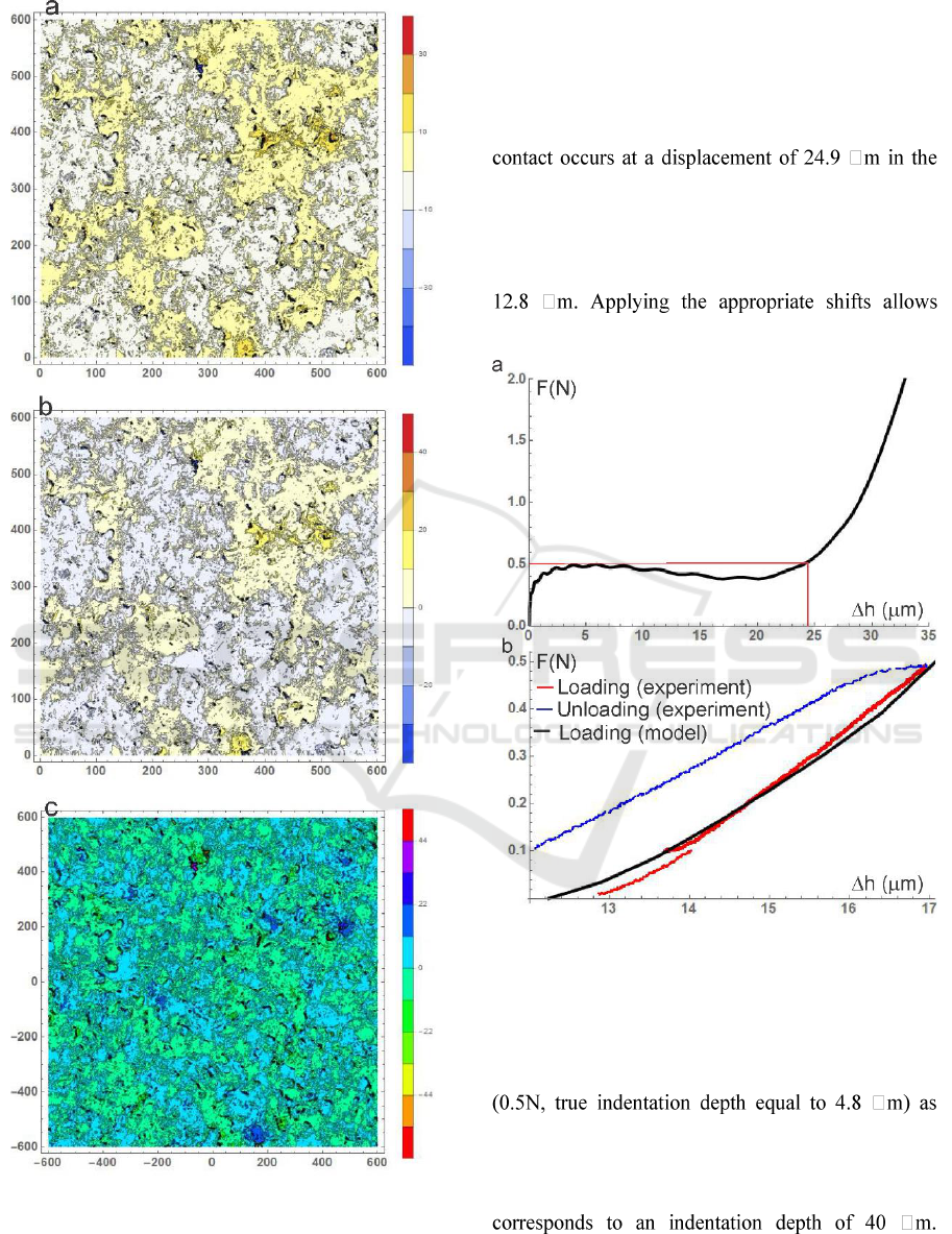 model at an indentation depth of