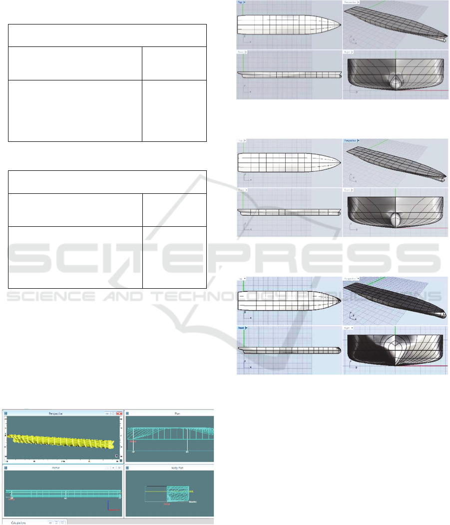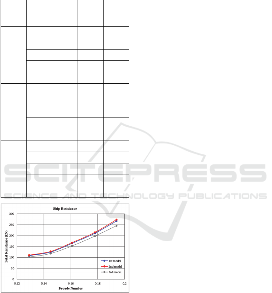 KN, while for the spherical bulbous bow model is 0,007211 and 267,22 KN and for the lowest form of tapering
