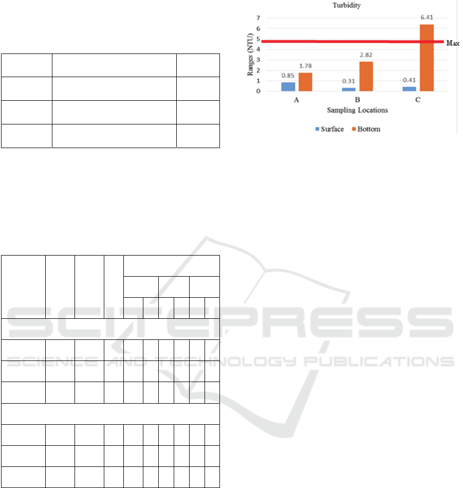water quality under The Decree of the Minister of Environment No.51/2004. Result of turbidity,