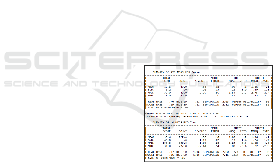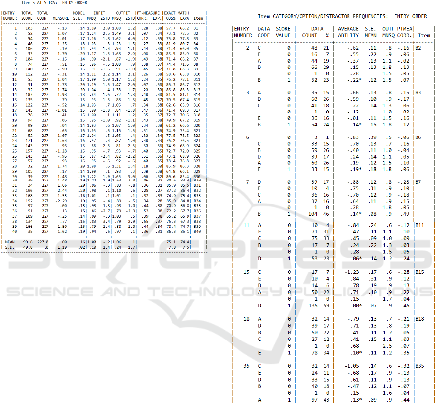 Rasch modelling to the data in the form of