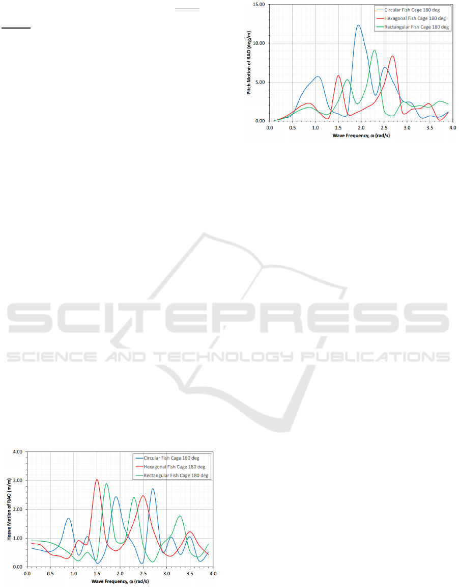 analysis reveal that the response of circular fish cage has the largest amplitude in heave and pitch motion than