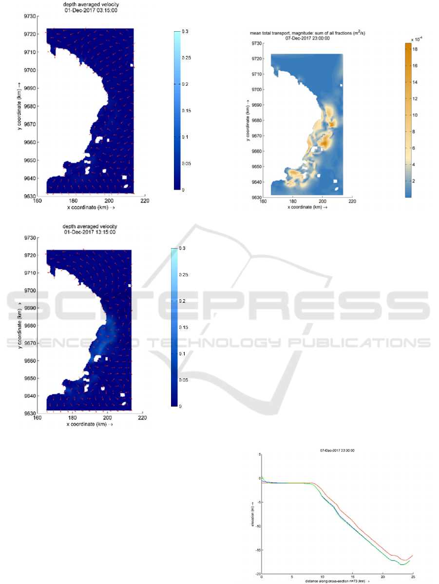current magnitude is 0.3 ms-1 which occurs during spring tide period. The sediment transport rate is 18 x 10-
