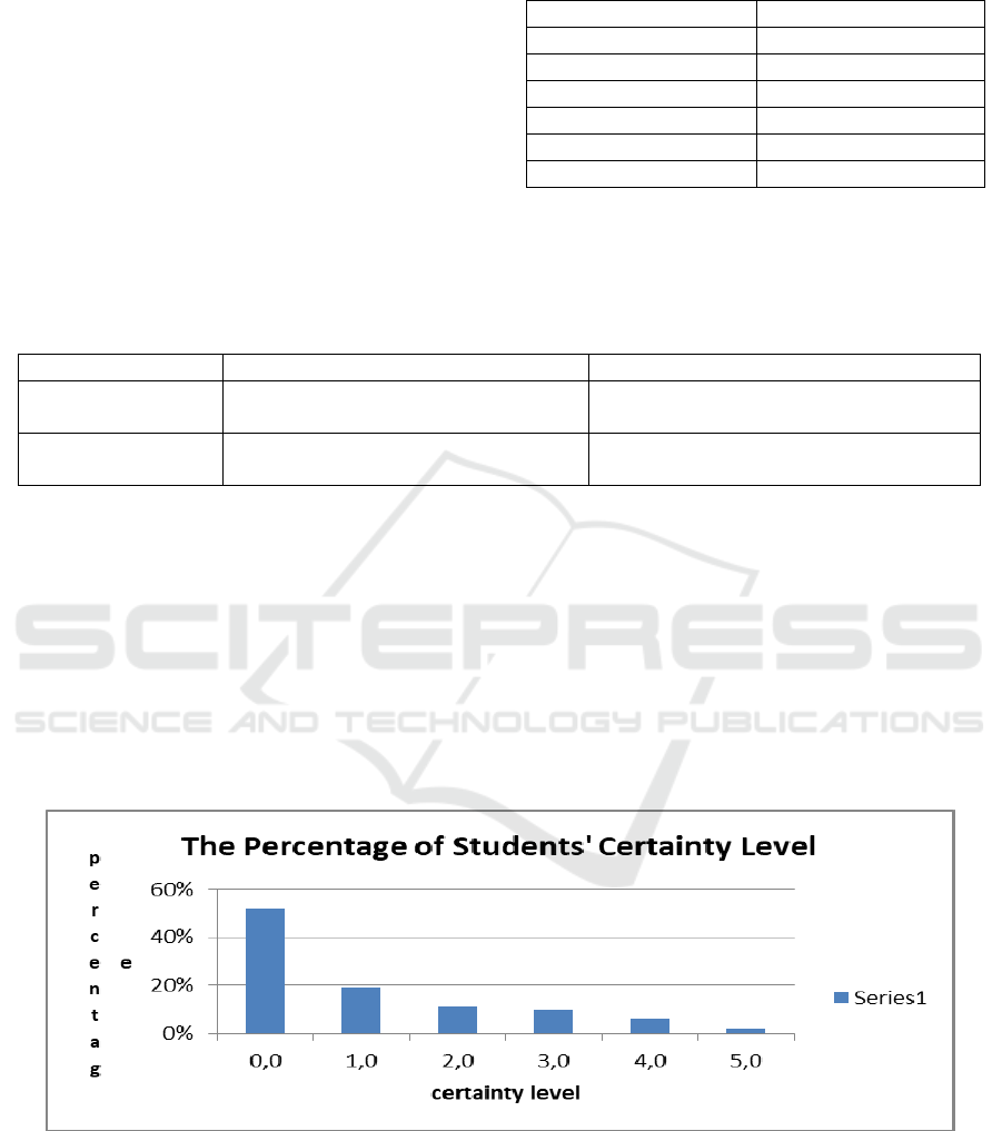 students’ certainty in answering the diagnostic test