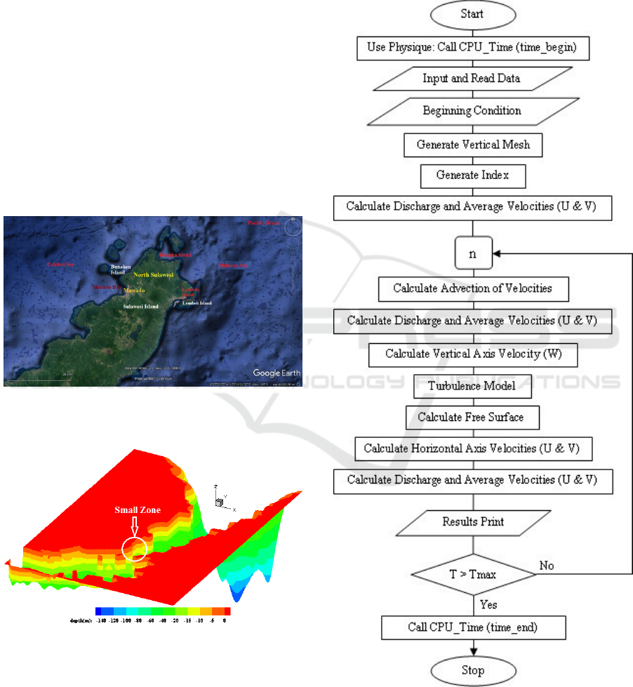 simulation of marine currents in the Bunaken Strait,