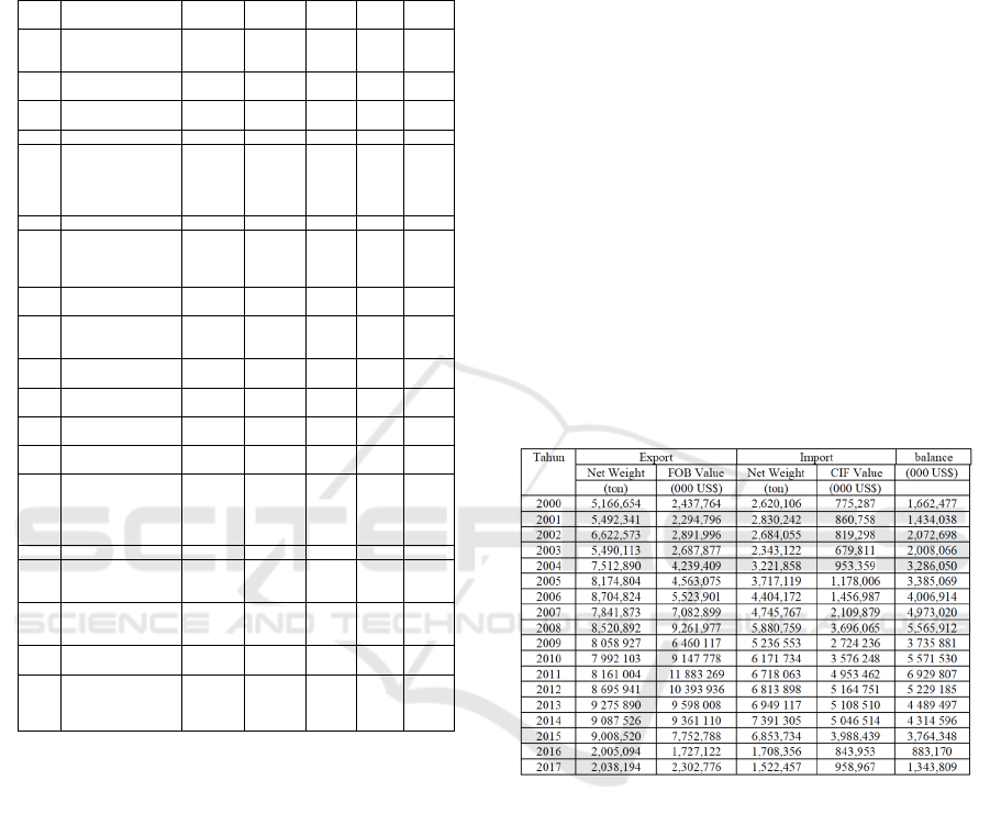 commodity is more than one (RCA> 1), the