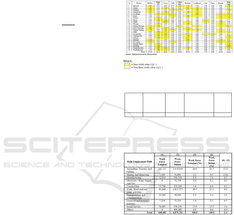 Based on the results of Location Quotients Analysis