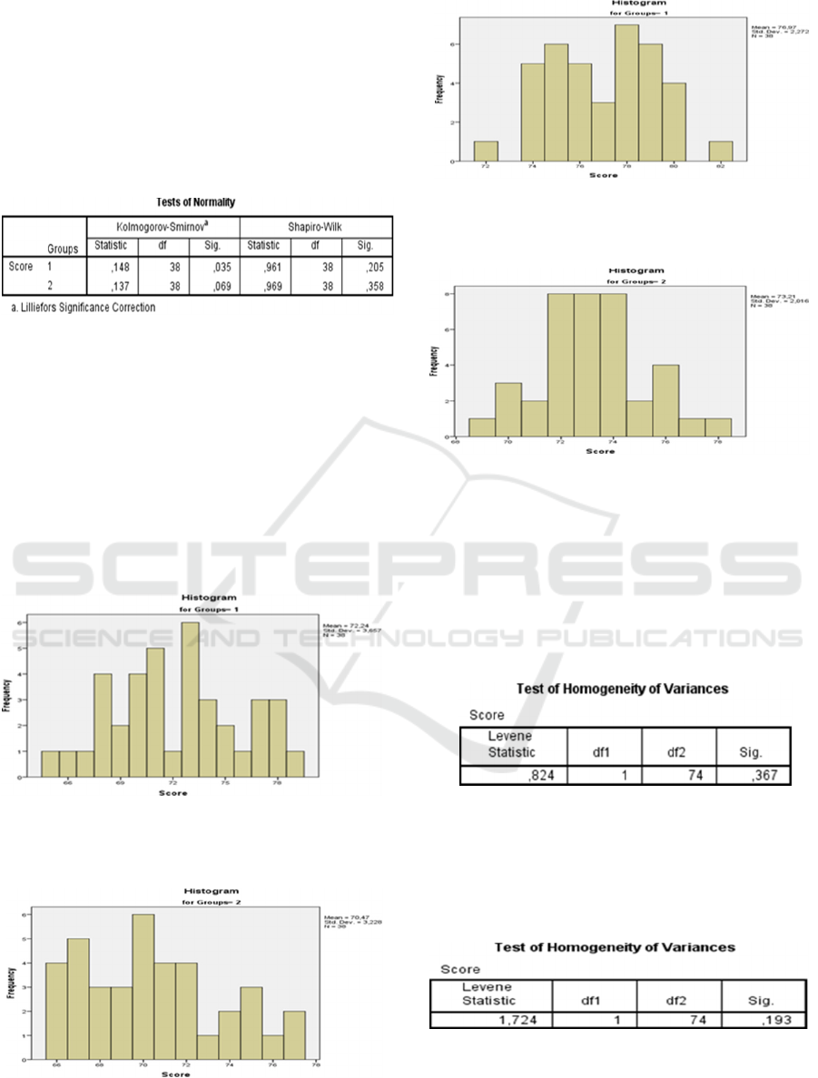 lower than the determined significance value 0.05. As