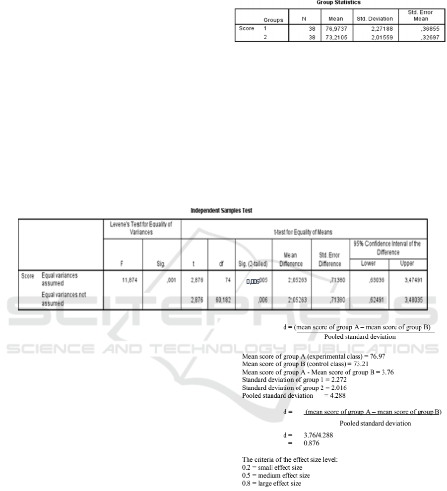 words, there is a significant effect of Bingo game on