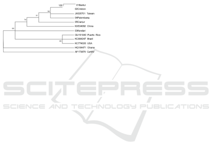 Figure 3. Phylogeny tree isolates CPMMV from Bantul,