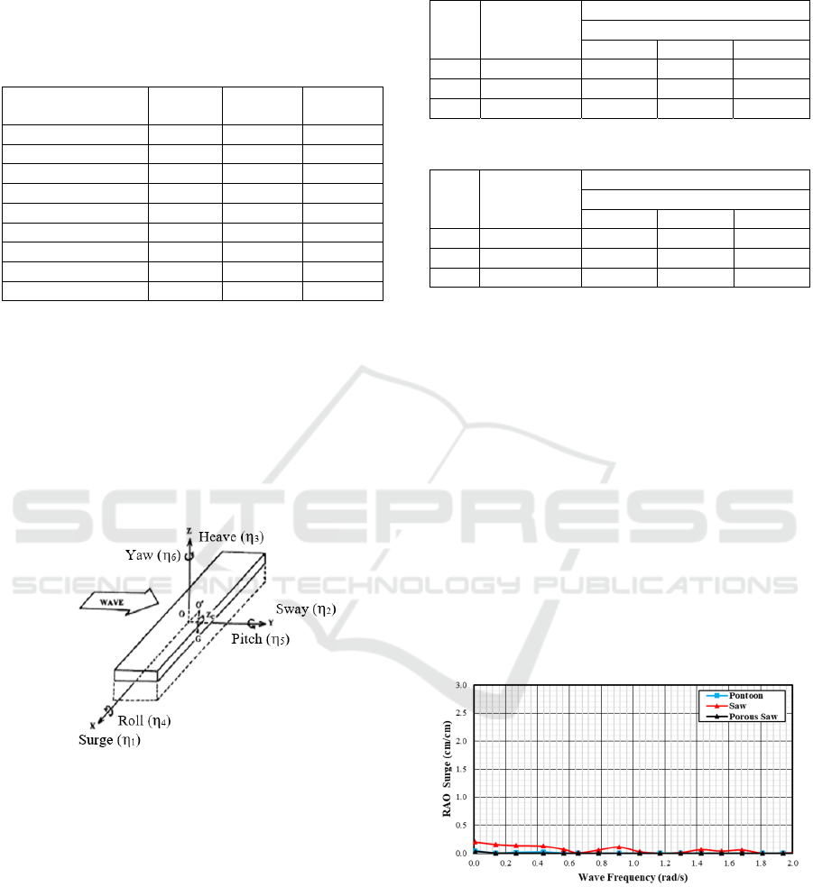 The floating breakwater motion in the direction of