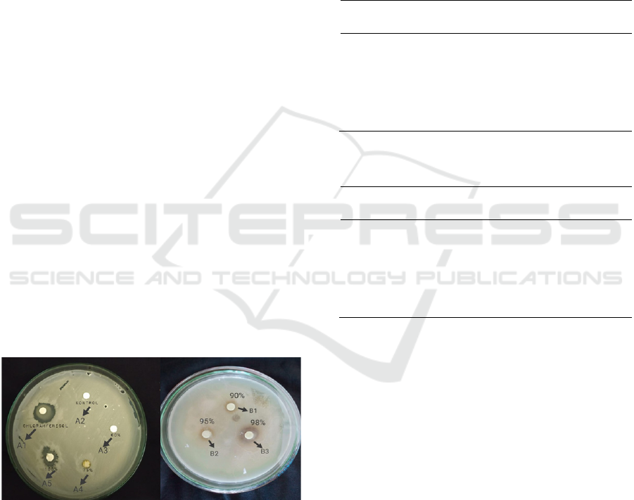 extract concentration. Results showed that inhibition occured at extract concentration 100% (4.5 mm) and