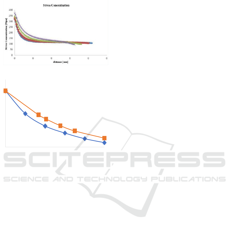 Figure 8: Stress distribution along path.