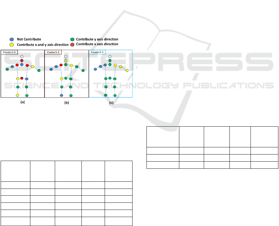 the running skill, in which five clusters were obtained