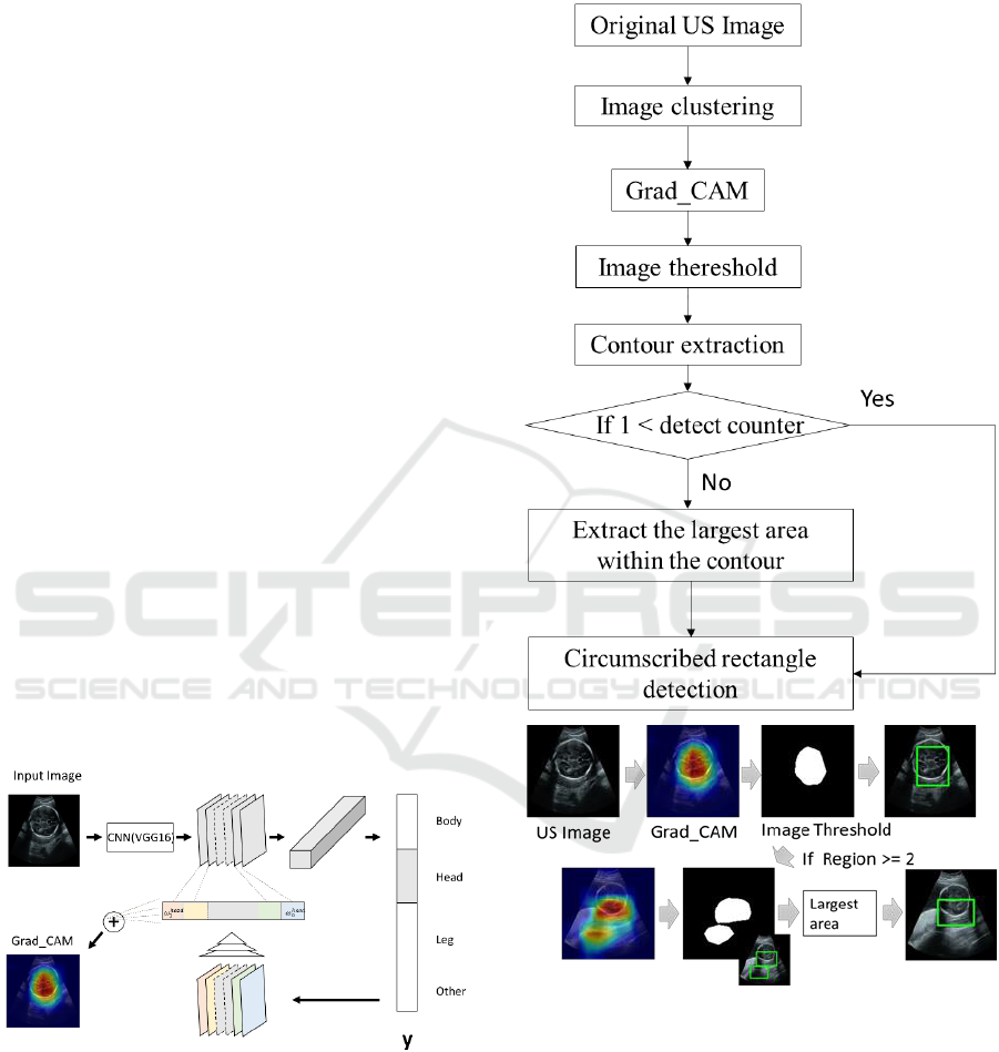 Detecting a Fetus in Ultrasound Images using Grad CAM and Locating the Fetus in the Uterus