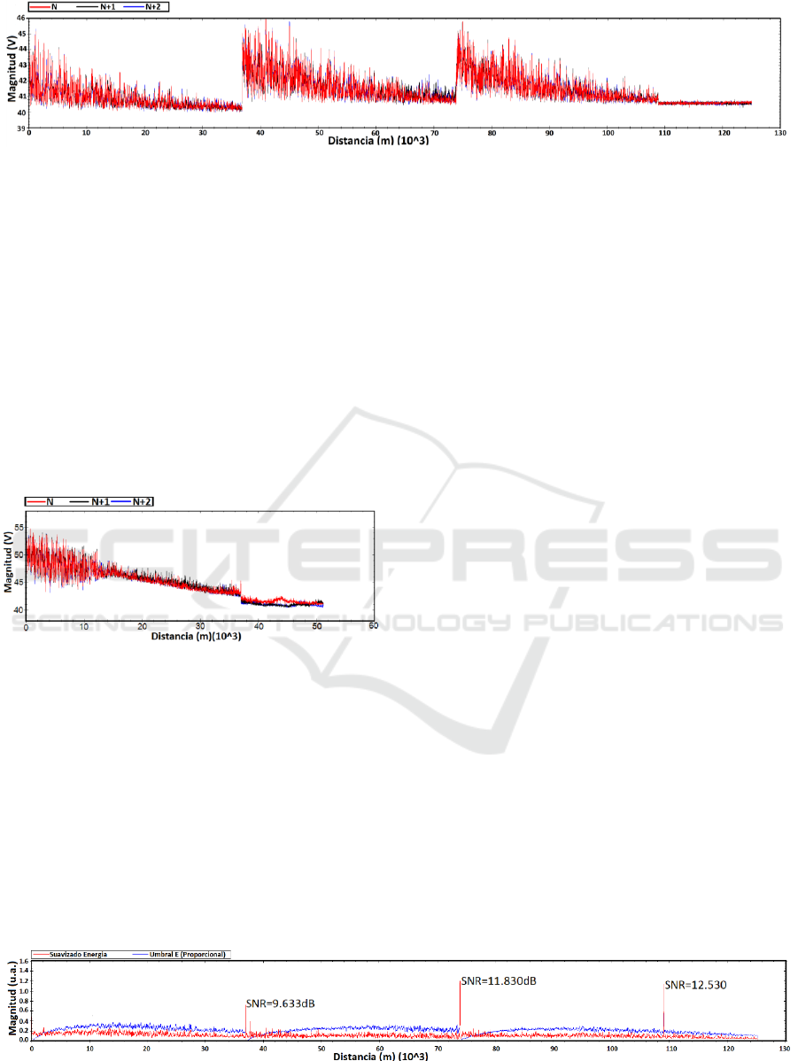 placed along the sensing optical fiber, each one followed by a detection stage. Results for some traces detected