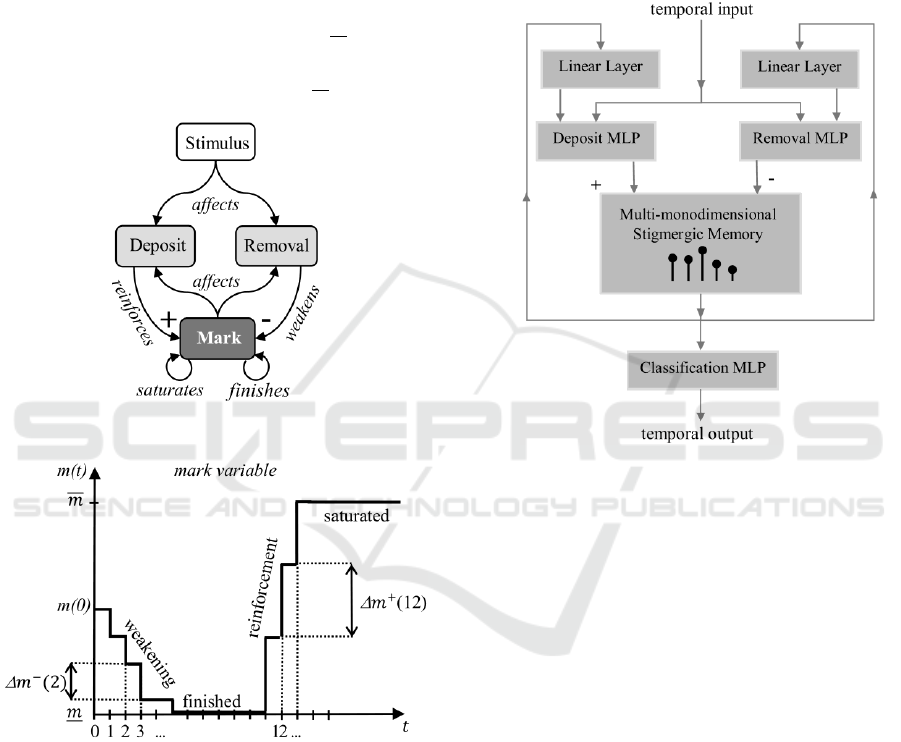 input of a stigmergic memory. The past dynamics of