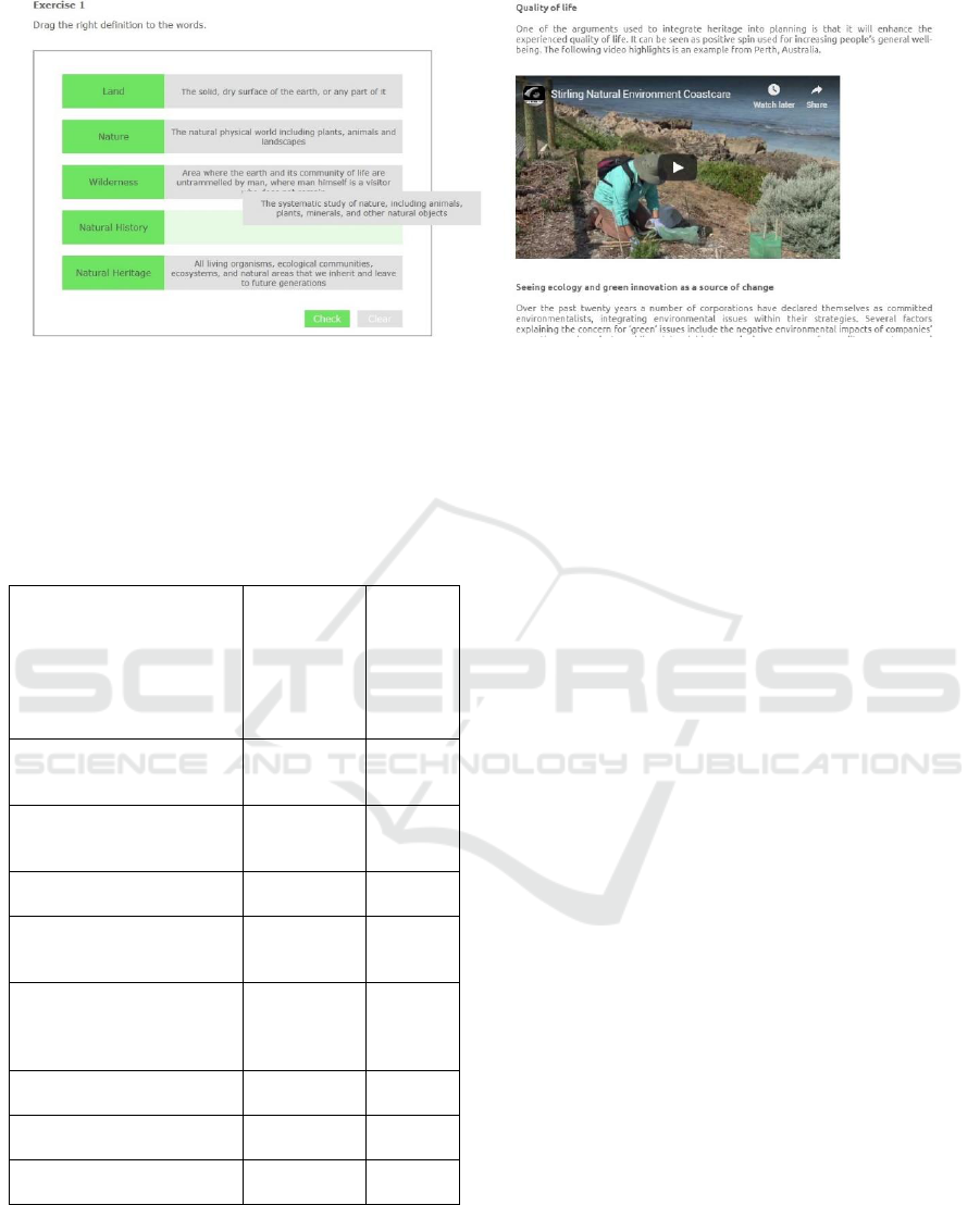 duration, difficulty or supported learning styles.