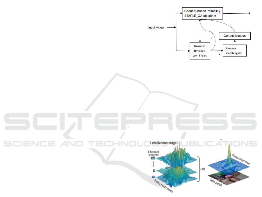 target location and verify the reliability through the Siamese dual-input network. The tracker will regard this