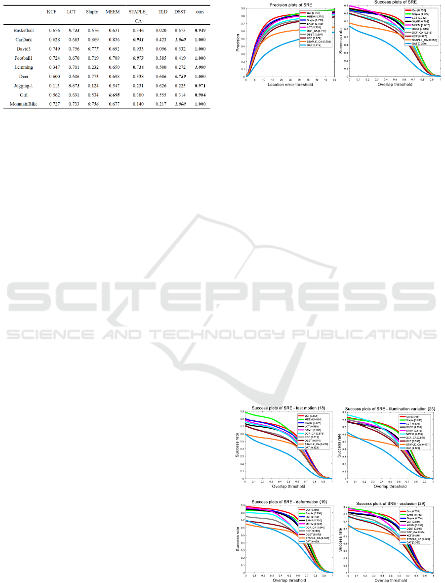 robust. The experimental evaluation of the OTB13 video sequence proves that the proposed algorithm has