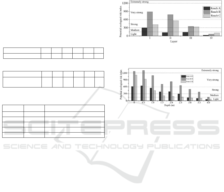 potential ecological risk indexes at different depths in the study area is calculated according to heavy metal