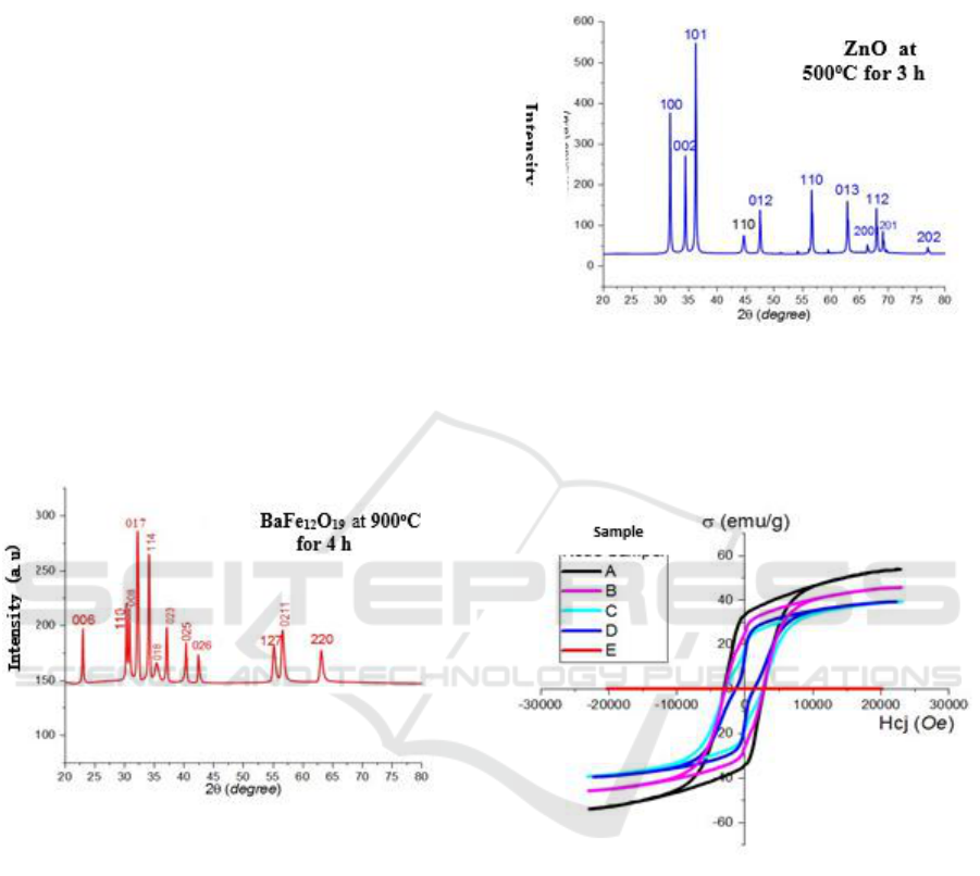 Å, c = 23.1940 Å. In order to get soft magnetic state, ZnO was added with a composition of: 0/100, 25/100,