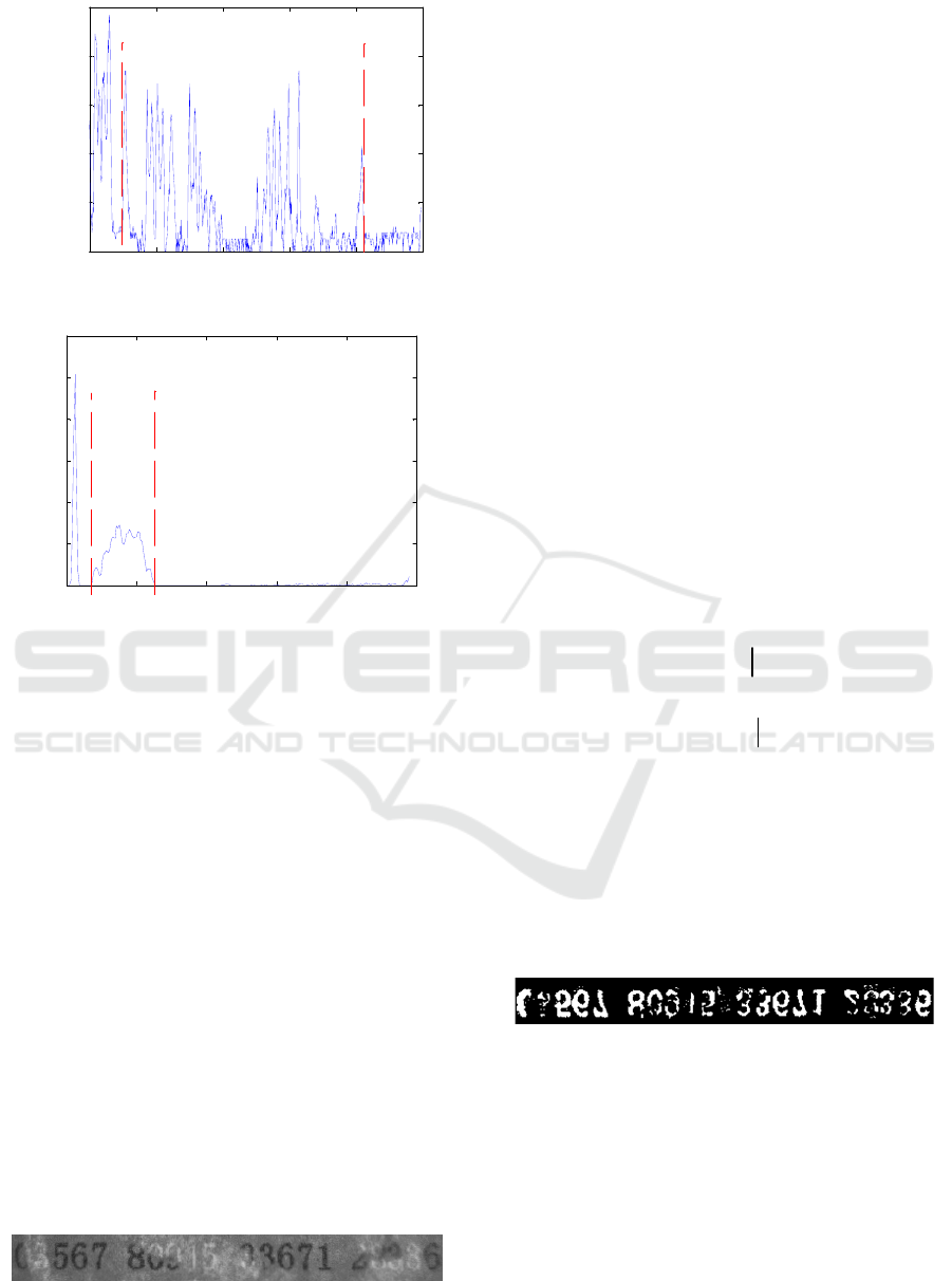 horizontal projection of the check codes, the binarization of the check codes is realized by double threshold