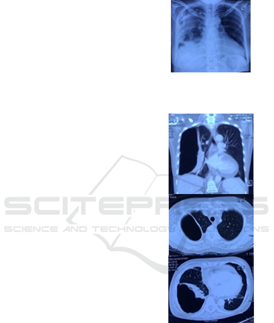 multiple giant bulla existed in the right lung with the