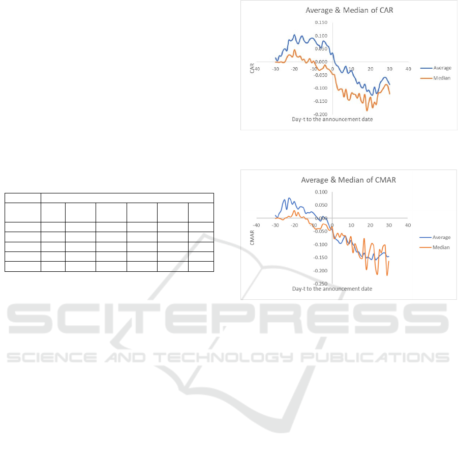 30 days post the announcement date. The abnormal