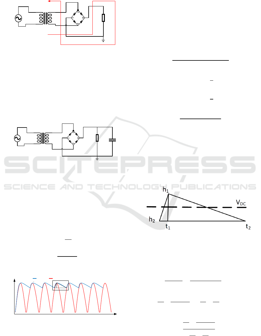 a theoretical calculation to calculate ripple voltage, peak voltage, the mean voltage of the rectifier, as well as