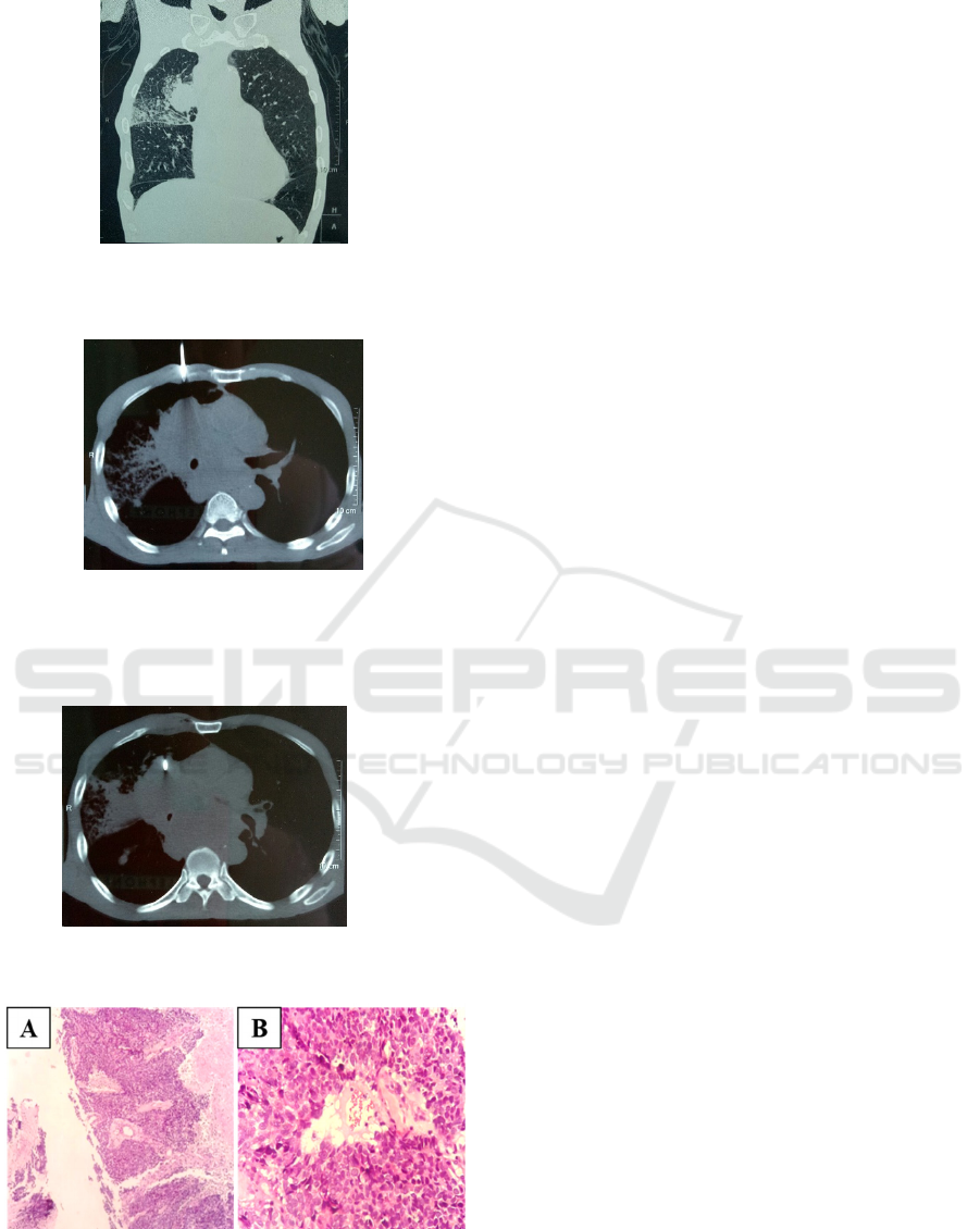 Figure 3: Thorax CT showed needle marker in the tumor