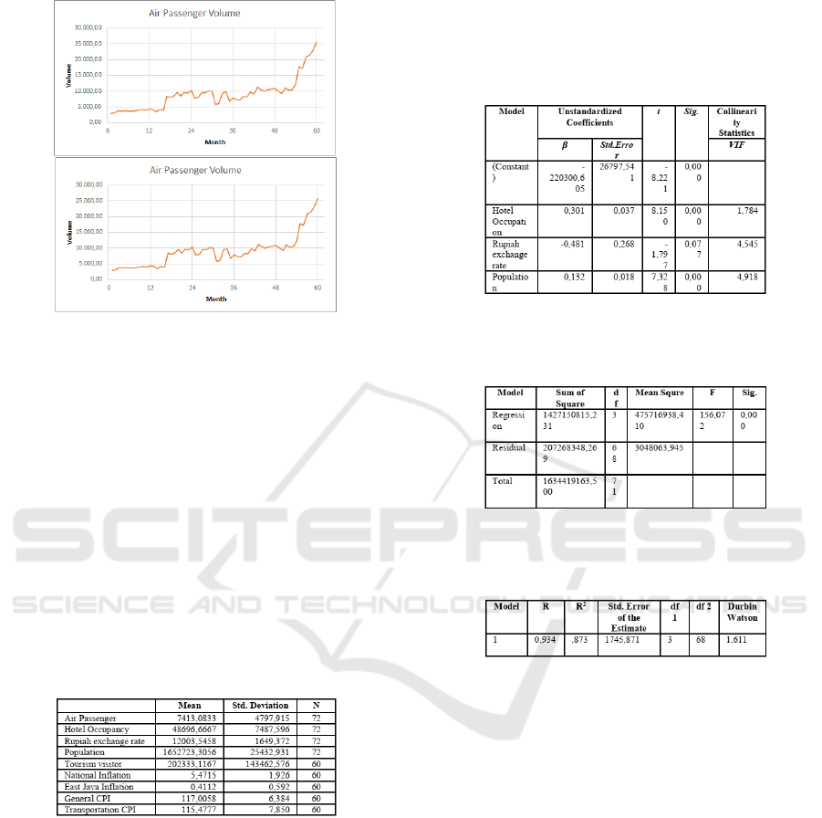 results, three factors significantly effect the volume of air passengers, that is, hotel occupancy affect 0.301%,