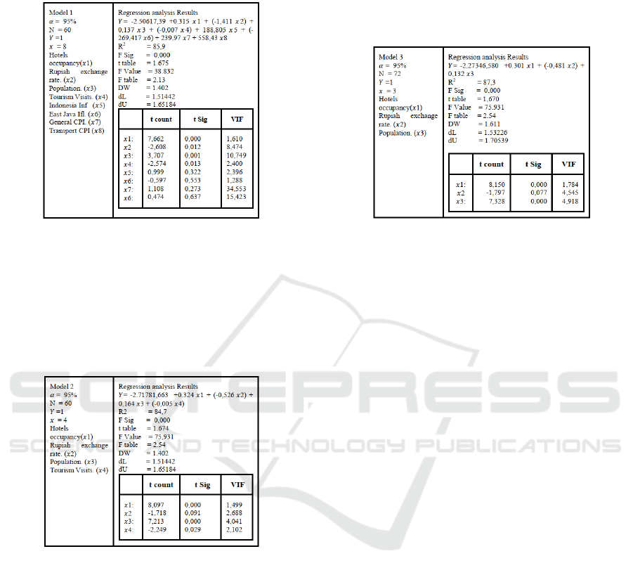 several economic factors, such as hotel occupancy, population, rupiah exchange rate, tourism visitor, inflation,