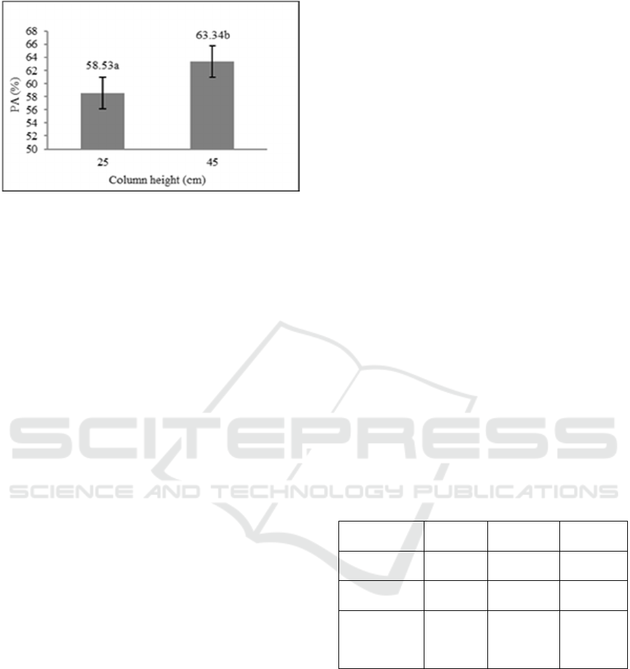 fractionation distillation using a column height of 45