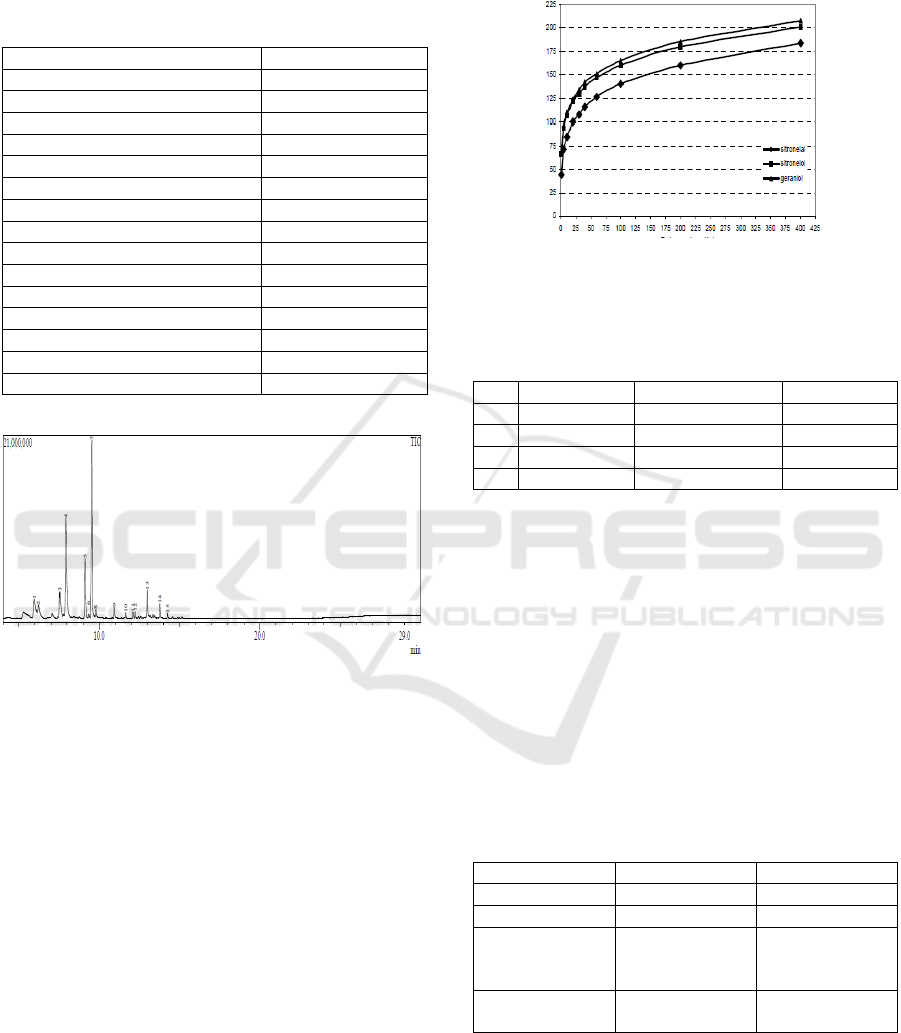 citronellol 25.57% and geraniol 46.19%.The