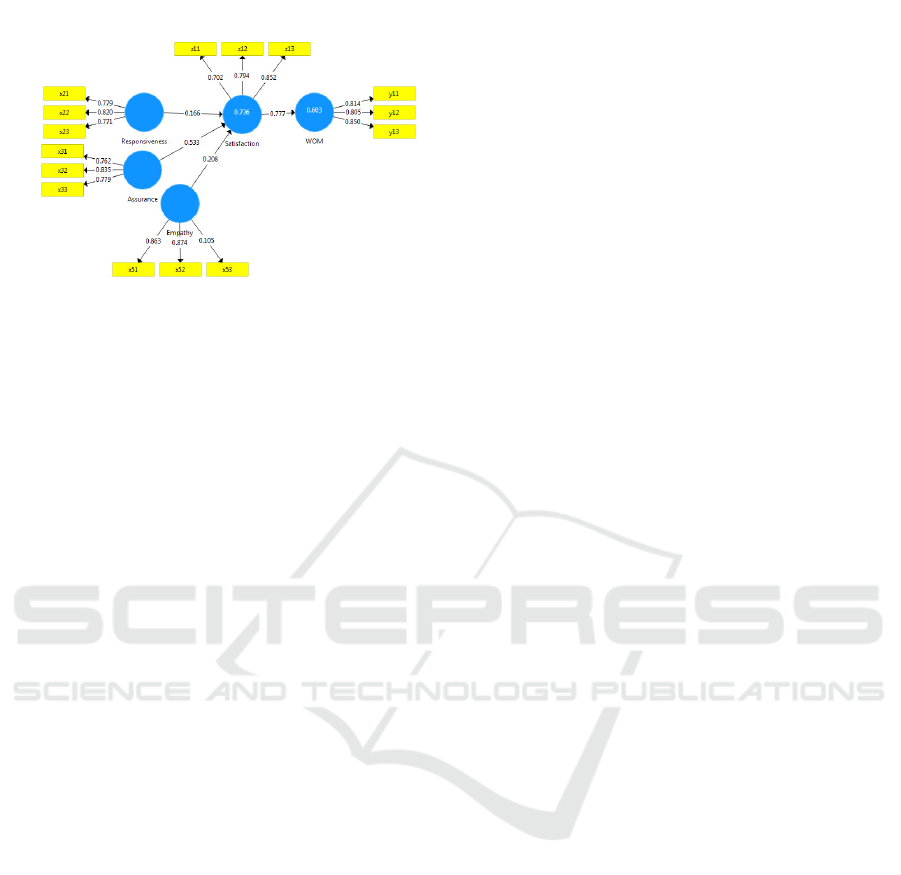 effect of Assurance (53.3%) on WOM with