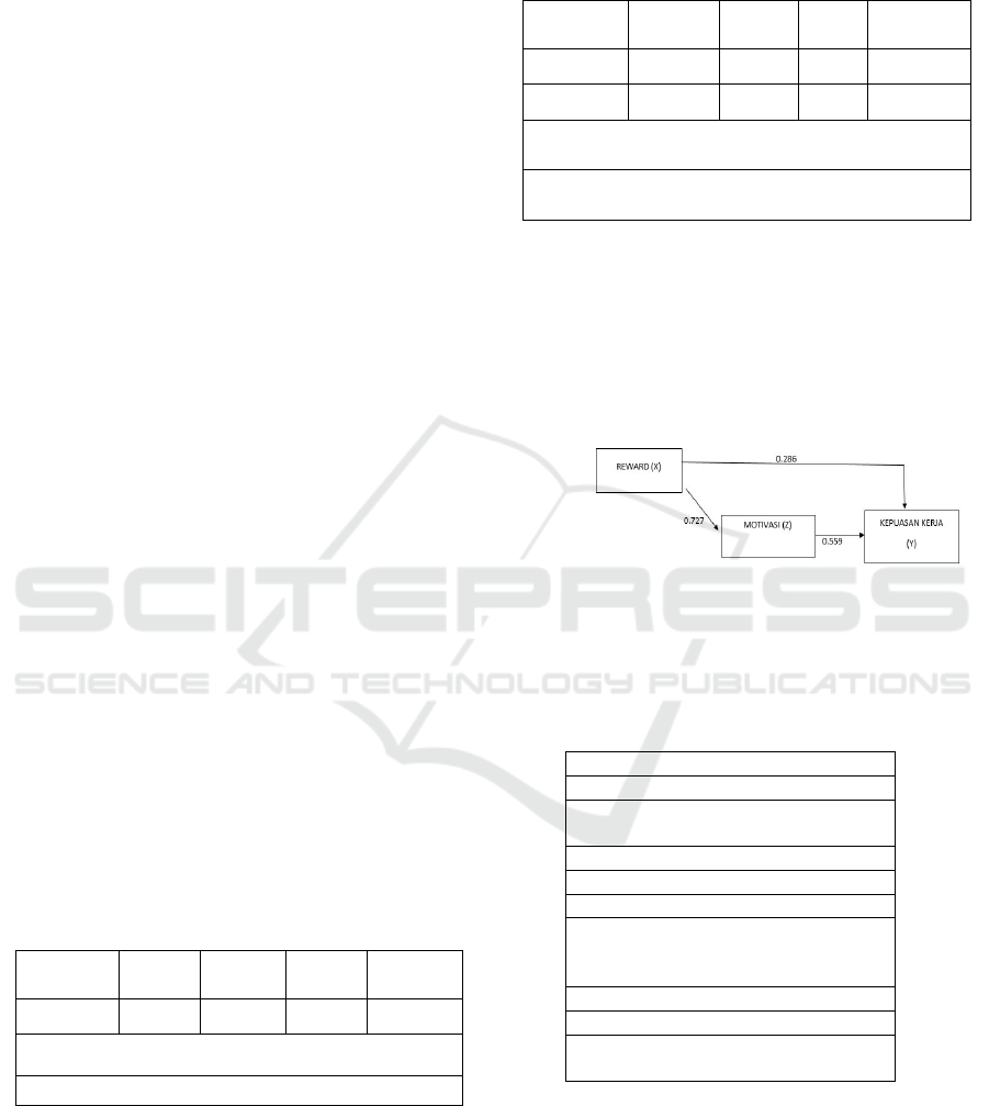 The results of path analysis show that reward has a
