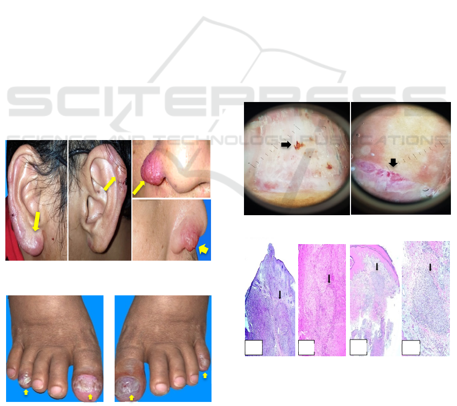 nose and both ears. These lesions are identified to be