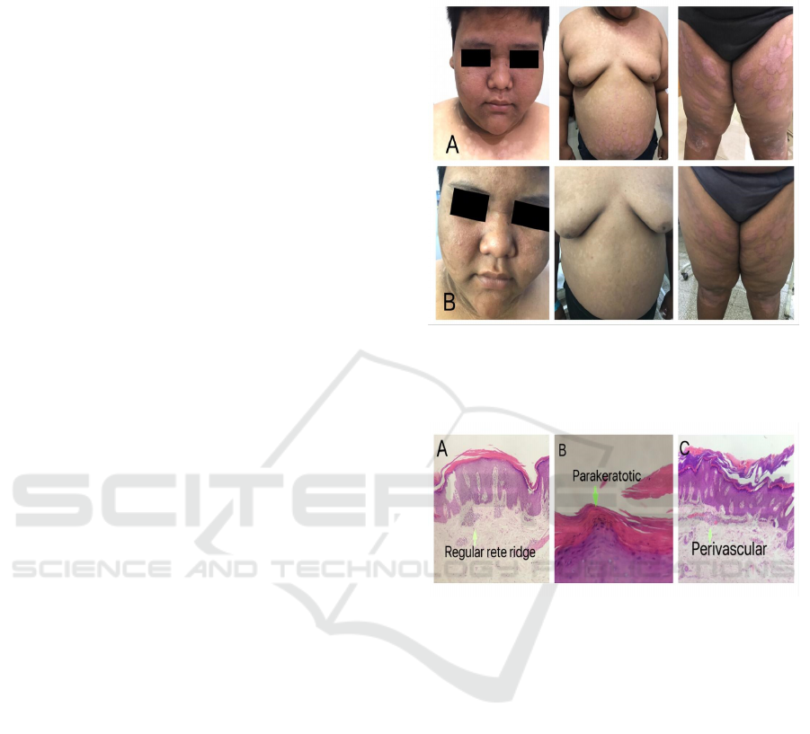 Dermatological examination showed erythematous