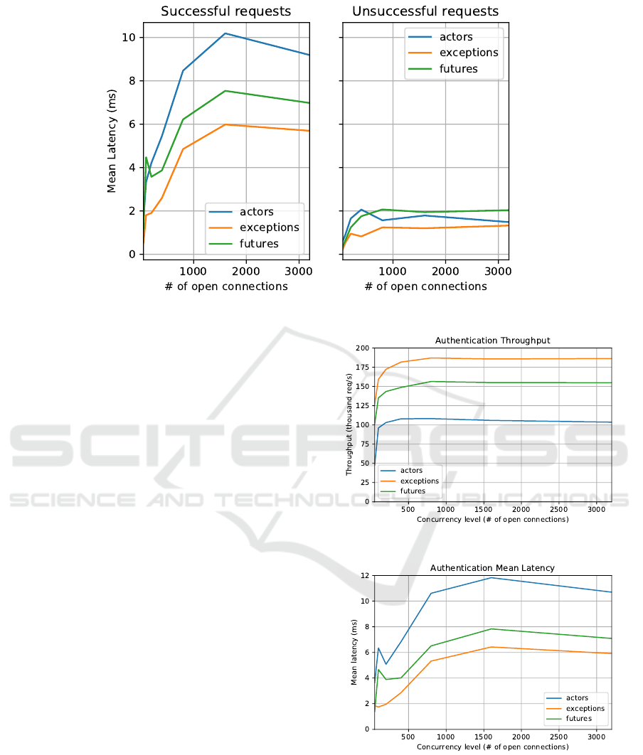 and actors (108K req/s; 10ms) (Figures 4 and 5).
