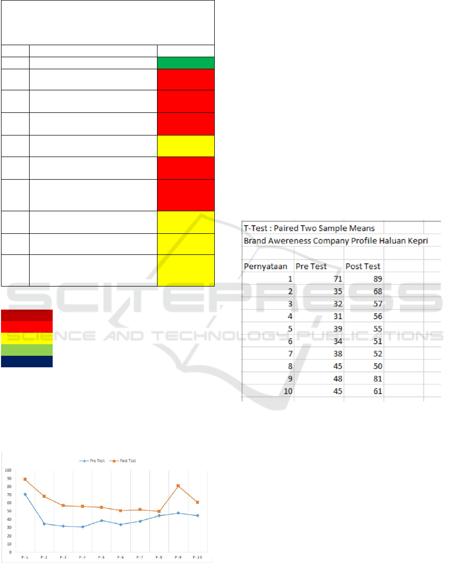 respondent’s awareness of local newspaper brands. Pre-test and the post-test results indicated a mean increase