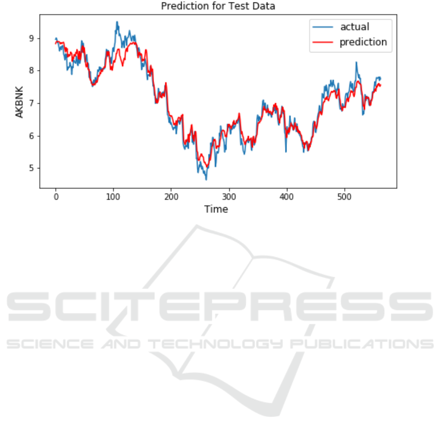 Figure 4: AKBNK stock prediction and actual closing price during the test.
