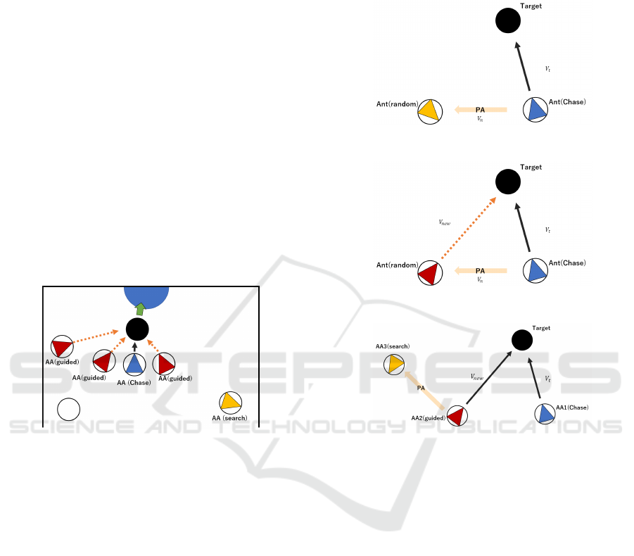 pheromone agents as many as it can find other AAs in