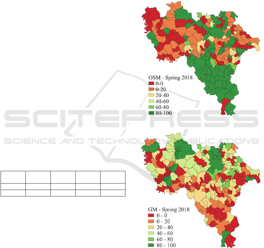 visual approach, OSM and GM is compared with