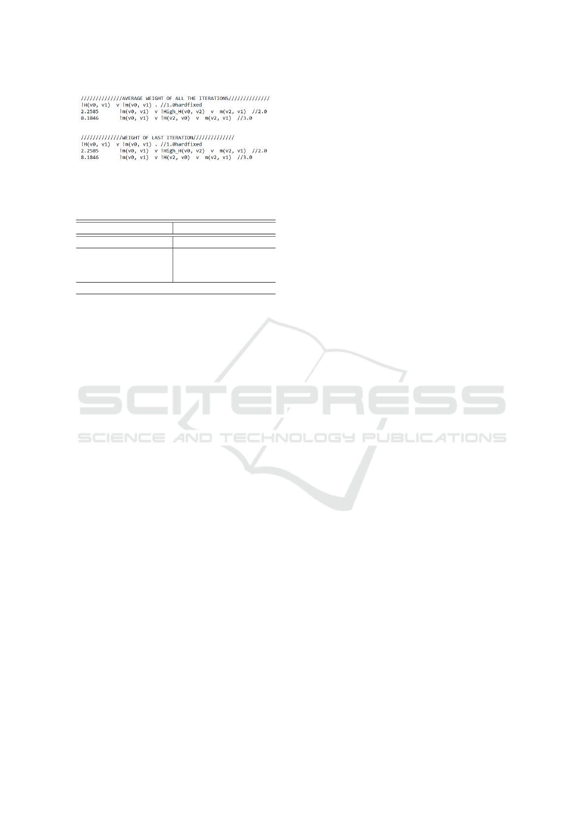 Table 6: Weight learning of formulas with unique occurrence of Hearst pairs vs multiple occurrence of Hearst pairs.