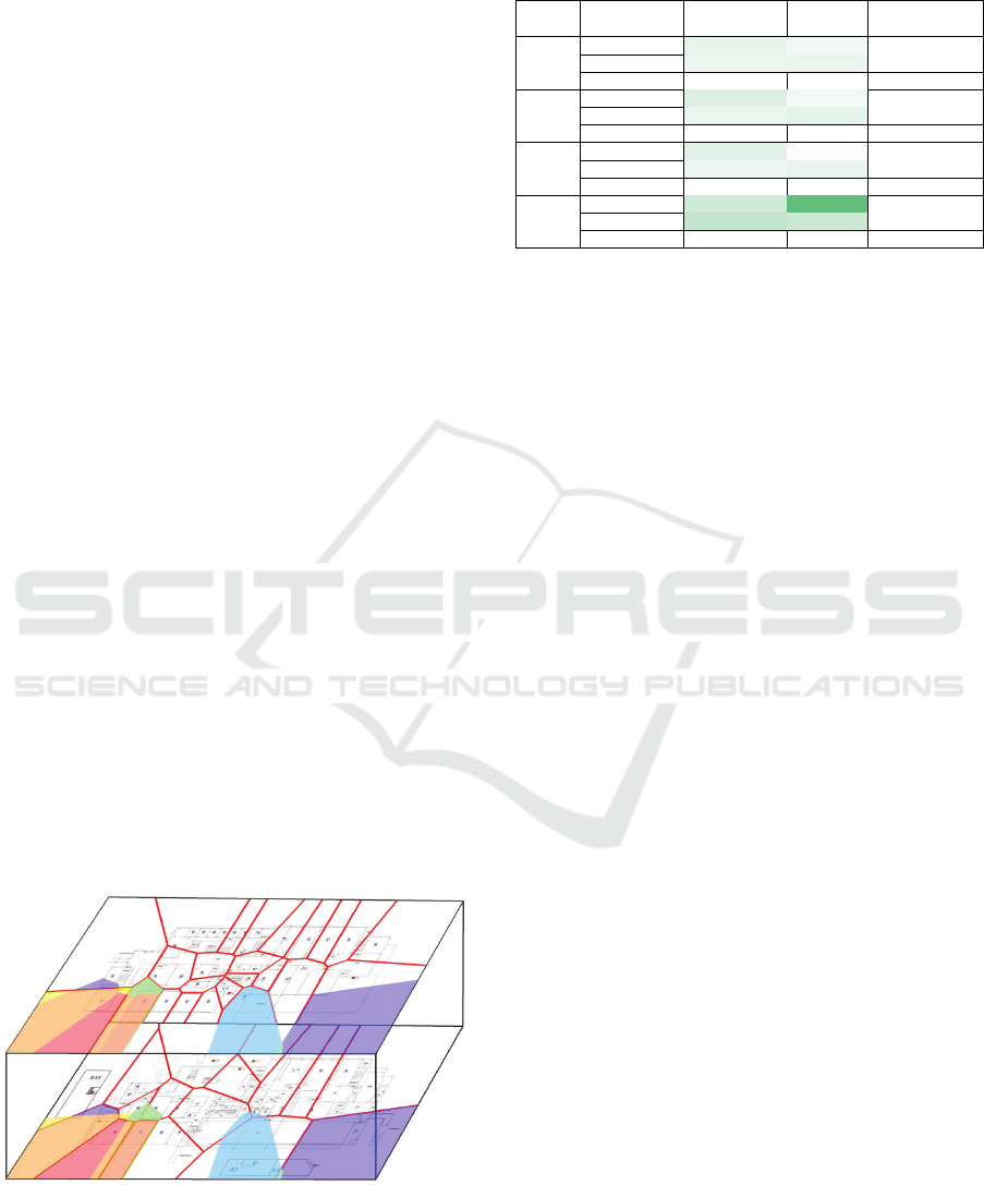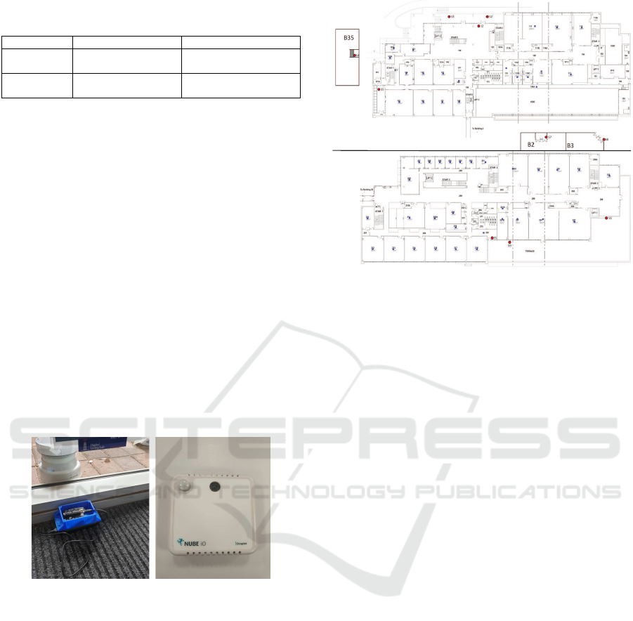 or outside a building, the latter on the spatial distance