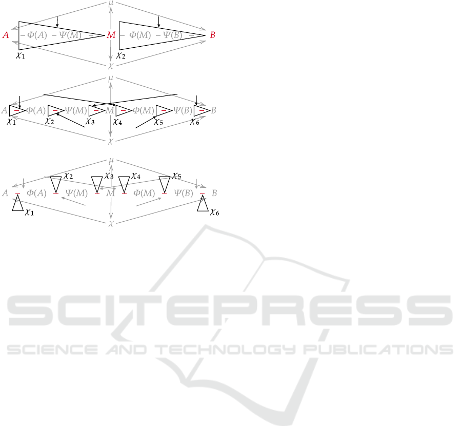 in blue. The identity of χ depends on M as well as