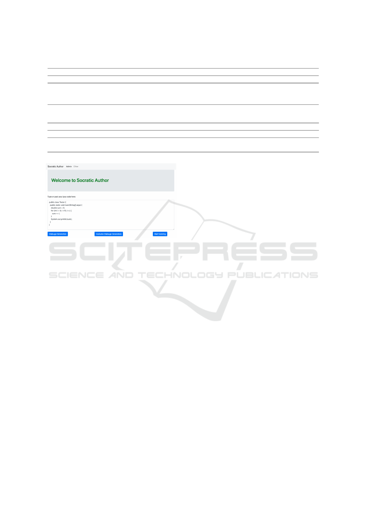 Table 5: Mean and Stander Deviation of survey questions for evaluating auto-generated tutoring dialogues by instructors.