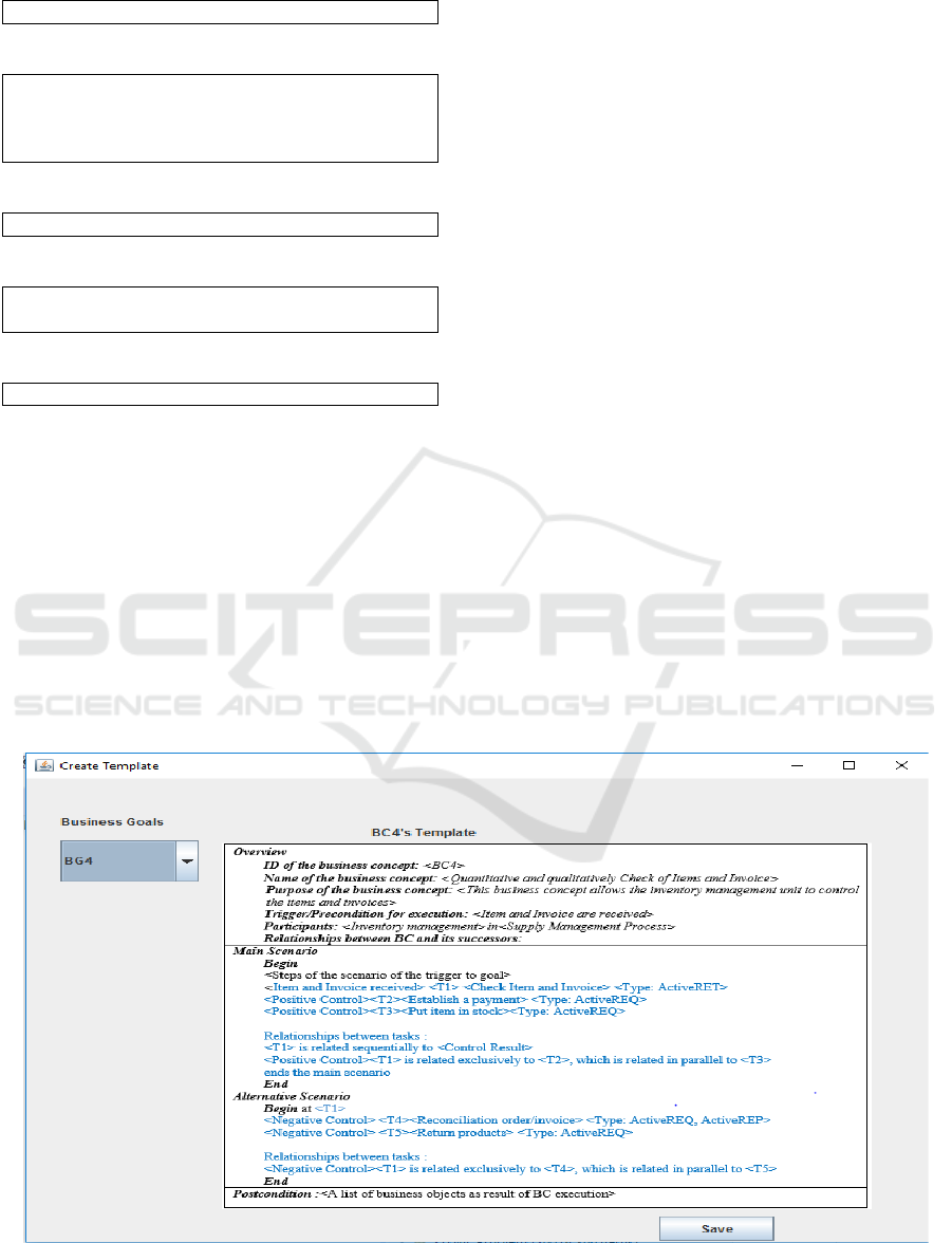 semantic of the business concepts’ template. It is used